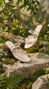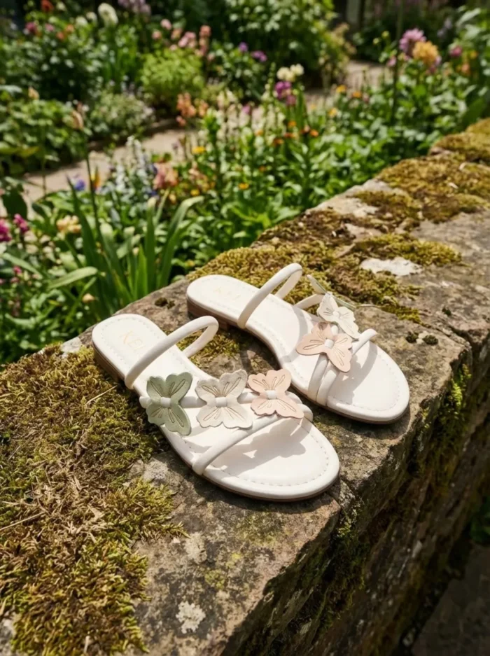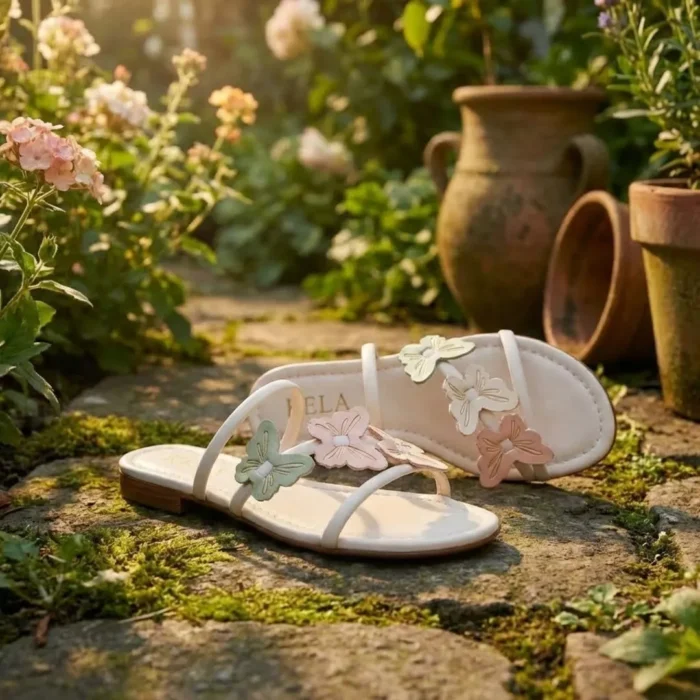 Rasteira com tiras finas e aplicação de borboletas em tons pastel. Leve, romântica e perfeita para compor looks delicados com um toque divertido.