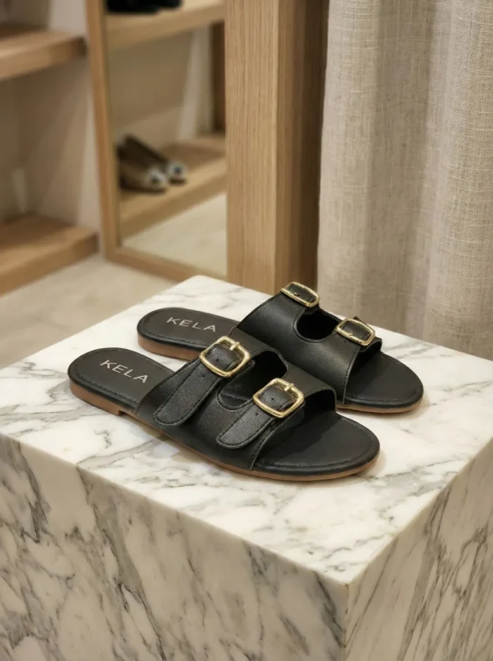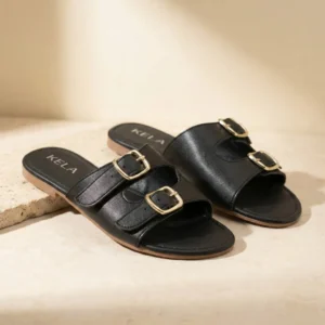 Seja o primeiro a avaliar “Rasteira Kela Clássica Preta Fivela Dourada”