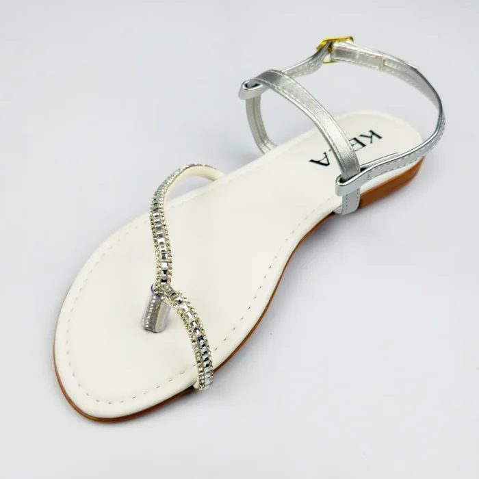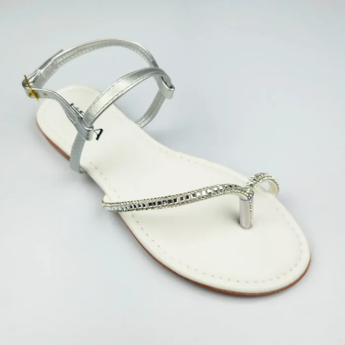 Minimalista e sofisticada, com tiras finas prateadas e brilho delicado que valoriza qualquer produção.