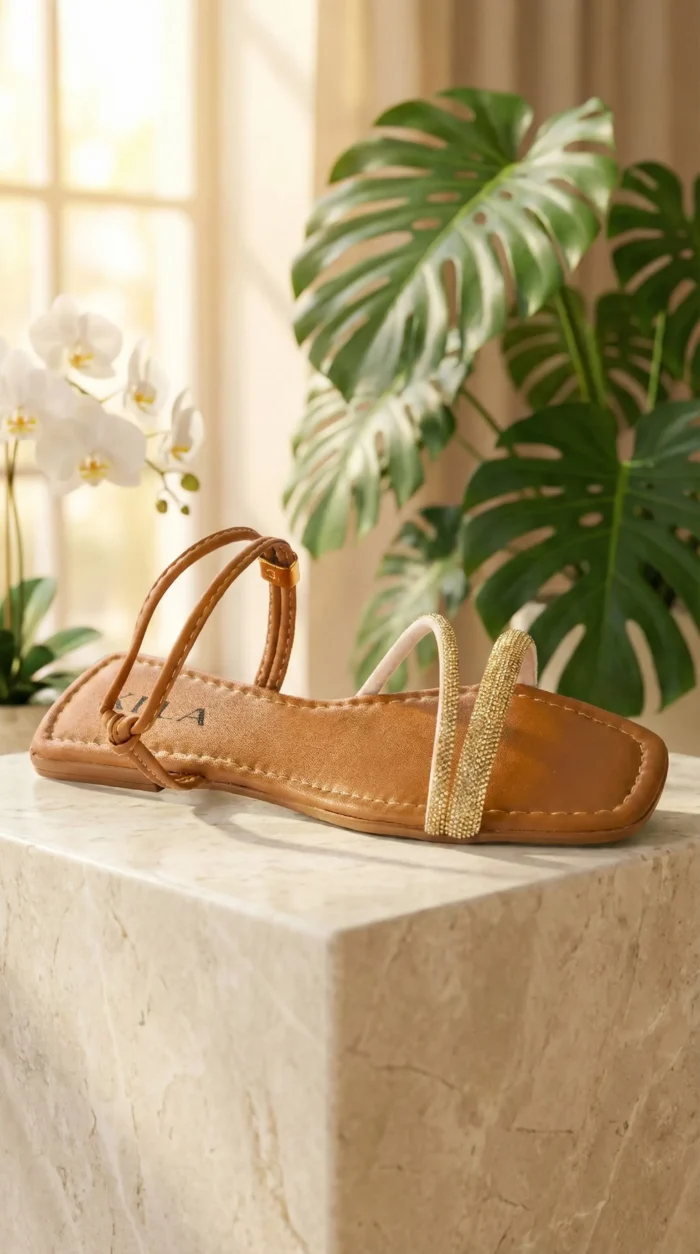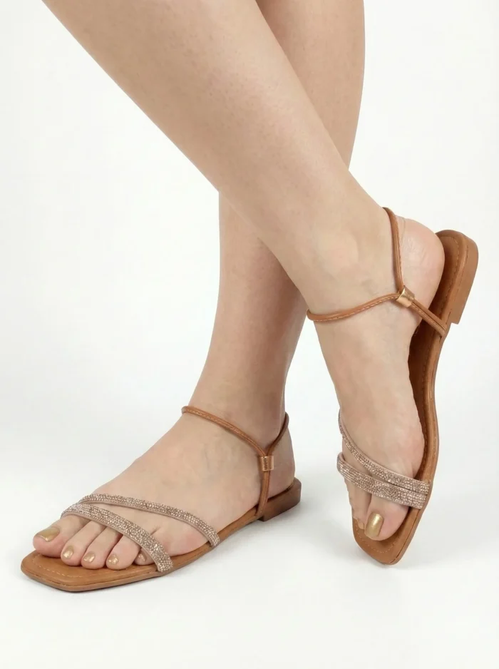 A Rasteira Kela Prime Caramel Lux entrega elegância e brilho em um visual moderno e marcante. Suas tiras duplas com strass dourado valorizam o pé com sofisticação, enquanto o tom caramelo garante um charme quente e atemporal. Com fechamento no tornozelo e design leve, é a opção ideal para quem busca um modelo premium que combina conforto e luxo em cada detalhe.
