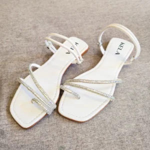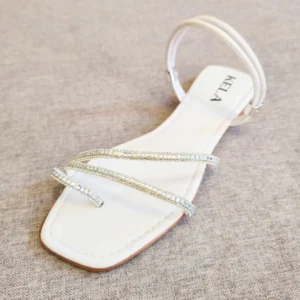 Brilho elegante em cada passo, com tiras finas cravejadas em strass que iluminam o look com leveza e sofisticação.