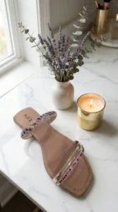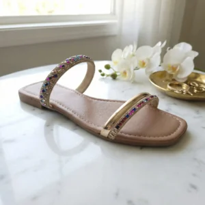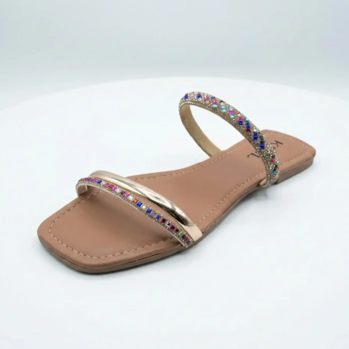 A Rasteira Kela Prime Crystal Color é puro destaque e sofisticação. Com tira frontal e pulseira no tornozelo cravejadas em strass multicoloridos, o modelo entrega brilho vibrante e acabamento premium, valorizando os pés com muito charme. A base em tom neutro equilibra o visual e garante versatilidade, sendo perfeita para quem ama um toque de cor, luxo e personalidade nos looks.