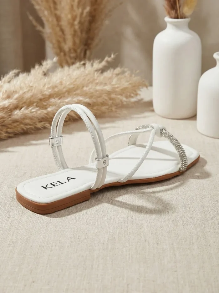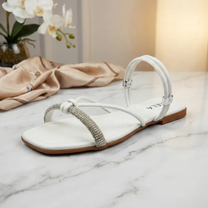 Um modelo glamouroso com tiras de strass, ideal para quem busca estilo e leveza.