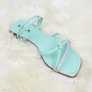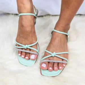 A Rasteira Kela Prime Green Charm traz frescor e elegância em um design leve e sofisticado. Com tira frontal em strass prateado e acabamento em verde menta, o modelo valoriza os pés com brilho delicado e conforto. As tiras finas com detalhe em nó e fechamento no tornozelo garantem charme e segurança, perfeita para compor looks modernos, leves e cheios de estilo da linha Prime.