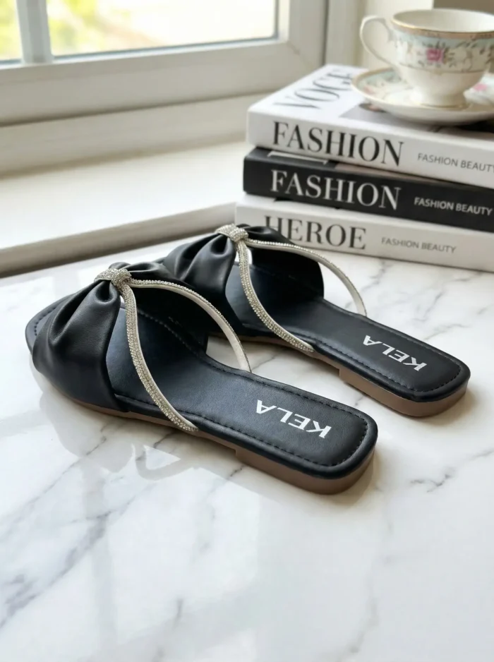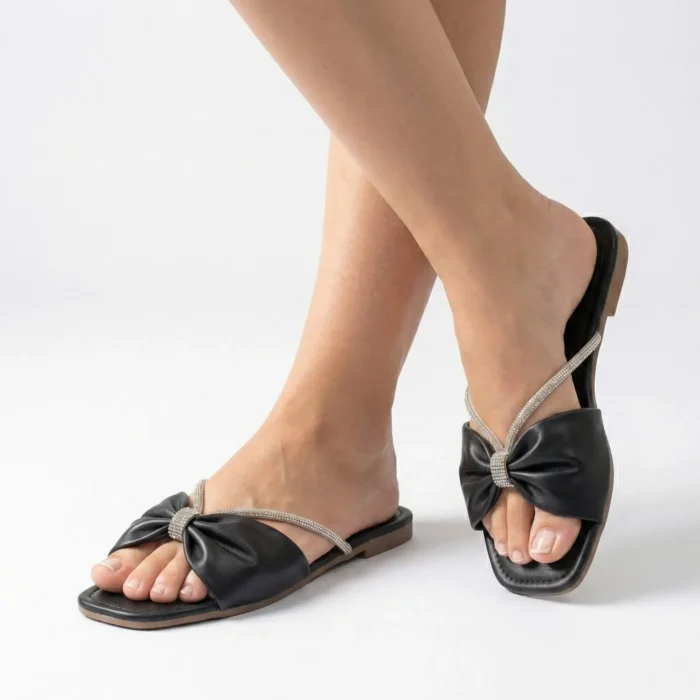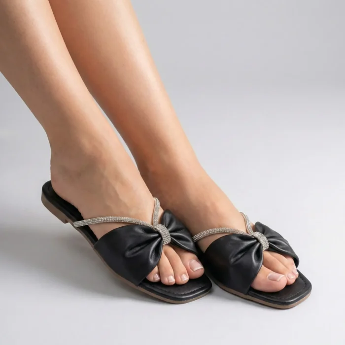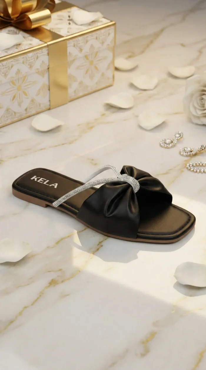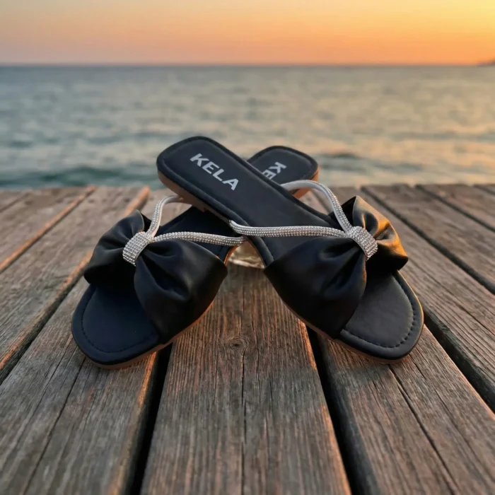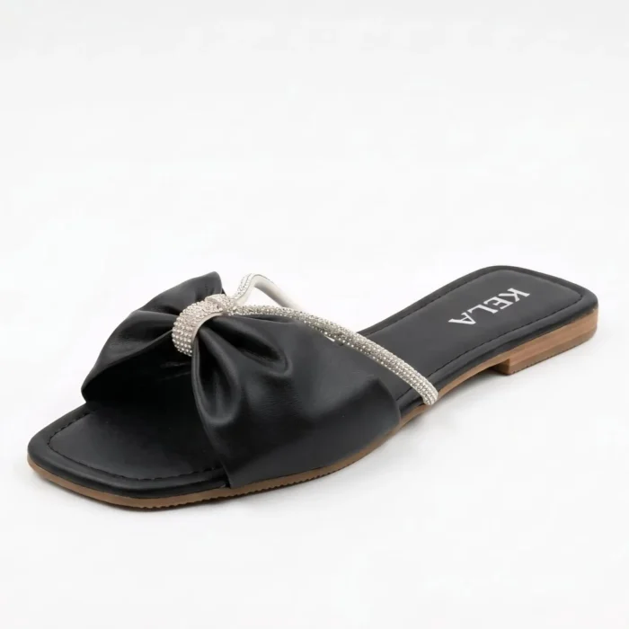A Rasteira Kela Prime Laço Lux é sinônimo de elegância e sofisticação. Com laço central em acabamento preto e detalhe em strass prateado, o modelo valoriza os pés com brilho delicado e muito charme. Ideal para compor looks modernos e refinados, é perfeita para quem busca um toque luxuoso e feminino na linha Prime.