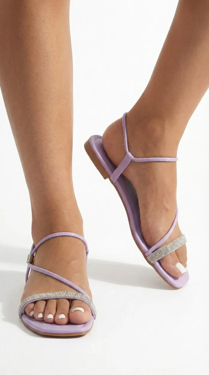 A Rasteira Kela Prime Lilac Charm une delicadeza e sofisticação em um design leve e feminino. Com tira frontal em strass prateado e acabamento em lilás suave, o modelo valoriza os pés com brilho elegante e conforto. As tiras finas com fechamento no tornozelo garantem segurança e charme, tornando essa rasteira perfeita para compor looks modernos e românticos da linha Prime.