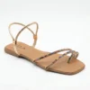 Modelo versátil em tom nude com tira frontal em brilho dourado refinado, trazendo sofisticação e leveza ao visual. Confortável e elegante, é perfeita para elevar produções do dia a dia ou compor looks mais arrumados com muito charme.