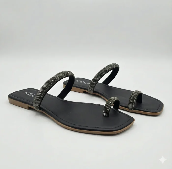 A Rasteira Kela Prime Midnight Glam traduz elegância e modernidade em um design marcante. Com base preta e tiras delicadas cravejadas em brilho escuro, o modelo entrega sofisticação na medida certa, valorizando os pés com um toque glam e contemporâneo. A pulseira no tornozelo garante ajuste confortável e segurança, tornando essa rasteira perfeita para produções noturnas ou para elevar looks do dia a dia com estilo Prime.