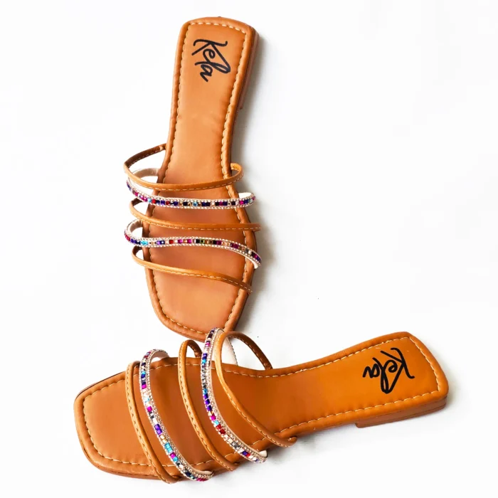 Design sofisticado com tiras finas cravejadas de brilho multicolorido. Um toque vibrante e elegante para realçar qualquer look.