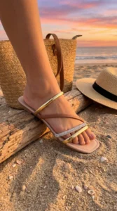 A Rasteira Kela Prime Nude Gold Charm combina sofisticação e luxo em um design elegante. Com base nude, detalhes em metal dourado e tira frontal com strass prateado, o modelo valoriza os pés com brilho refinado e muito conforto. A pulseira no tornozelo com acabamento metálico traz segurança e charme extra, tornando essa rasteira perfeita para looks modernos e sofisticados da linha Prime.