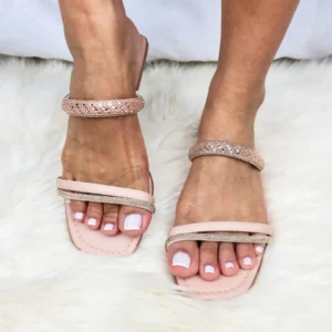 A Rasteira Kela Prime Rosé Delicatta traduz elegância e suavidade em um design sofisticado. Com tira frontal minimalista e pulseira no tornozelo cravejada em strass rosé, ela destaca os pés com brilho delicado e acabamento premium. O tom rosé adiciona charme e versatilidade, tornando o modelo ideal para compor produções modernas, femininas e cheias de estilo.