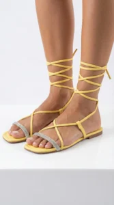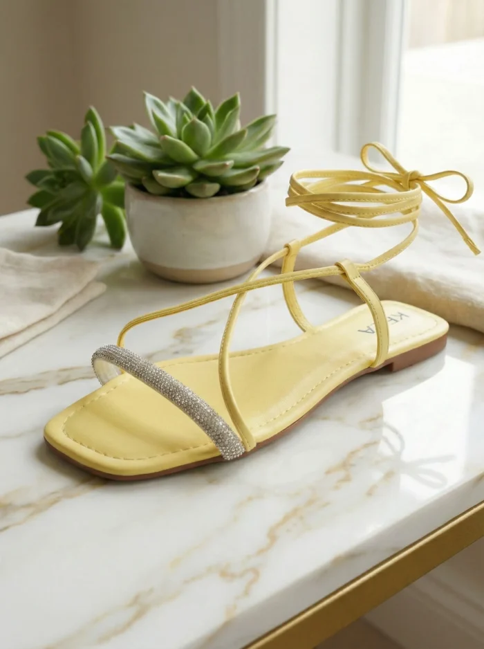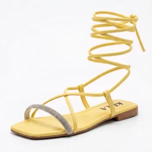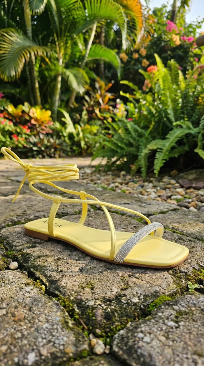 A Rasteira Kela Prime Sunny Glow é a definição de leveza e destaque. Com tiras longas de amarrar no tornozelo e acabamento em amarelo vibrante, o modelo traz alegria e modernidade ao visual. A tira frontal com brilho em strass adiciona um toque sofisticado, criando o equilíbrio perfeito entre ousadia e elegância. Ideal para quem quer iluminar qualquer look com estilo Prime.