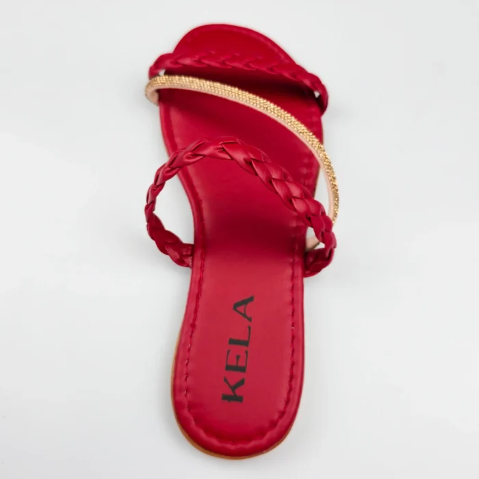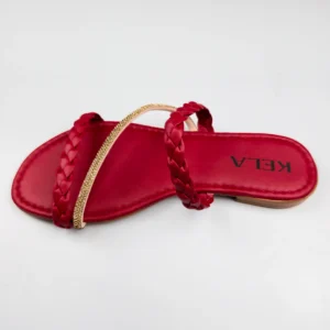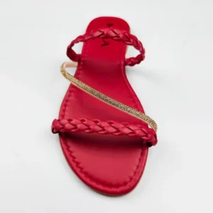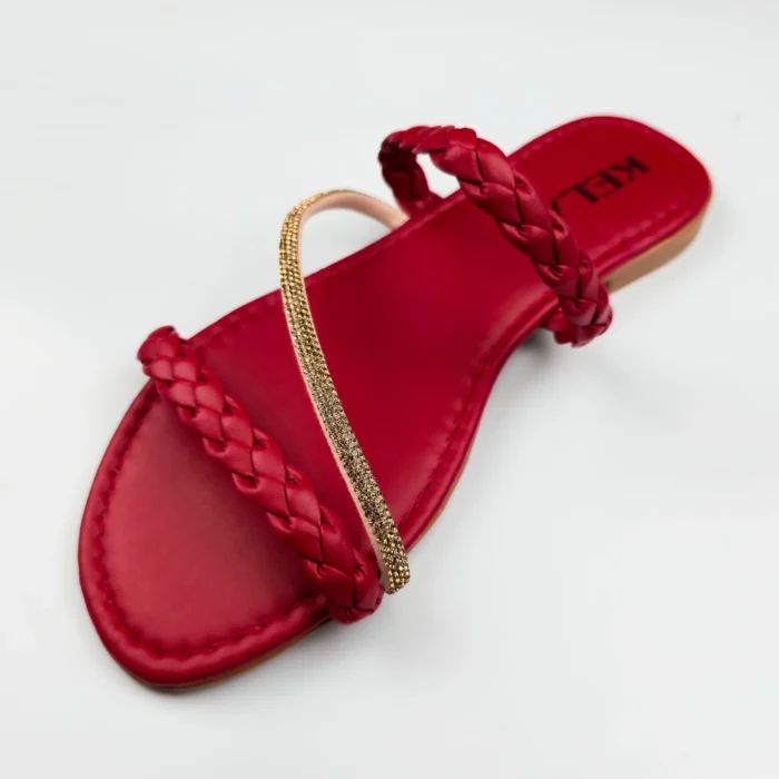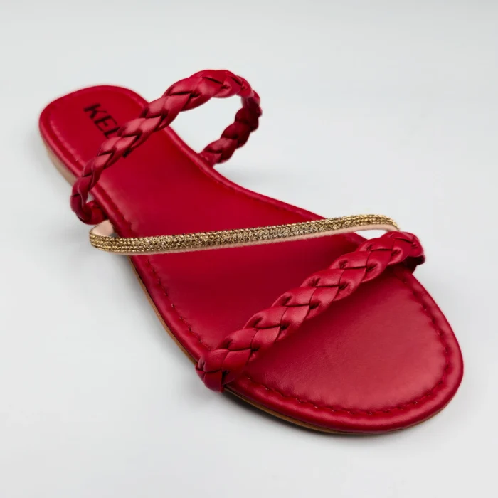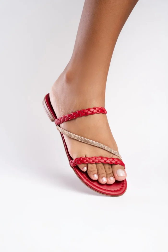 Com acabamento vermelho vibrante e tiras cruzadas, essa rasteira é puro destaque com elegância.