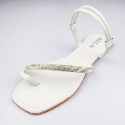 Design elegante com tiras cruzadas e aplicação de strass, perfeita para brilhar em qualquer ocasião.