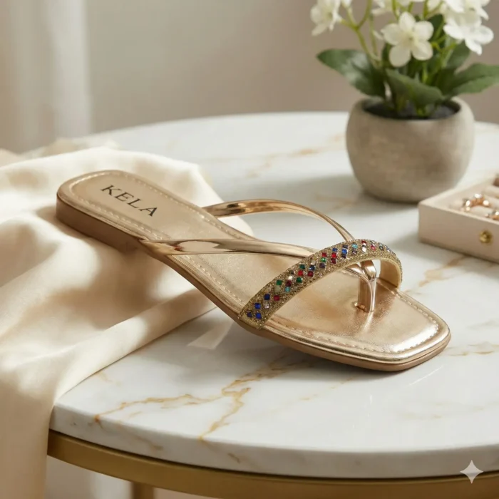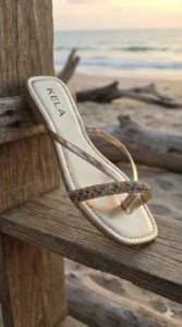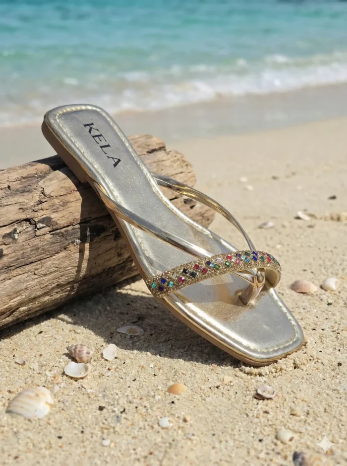 Sandália feminina da linha Prime, com acabamento rosé metalizado e design sofisticado. Possui tira frontal com pedrarias multicristais que garantem brilho e elegância na medida certa. Confortável, moderna e versátil, é ideal para elevar produções do dia a dia ou compor looks mais elegantes com muito estilo.